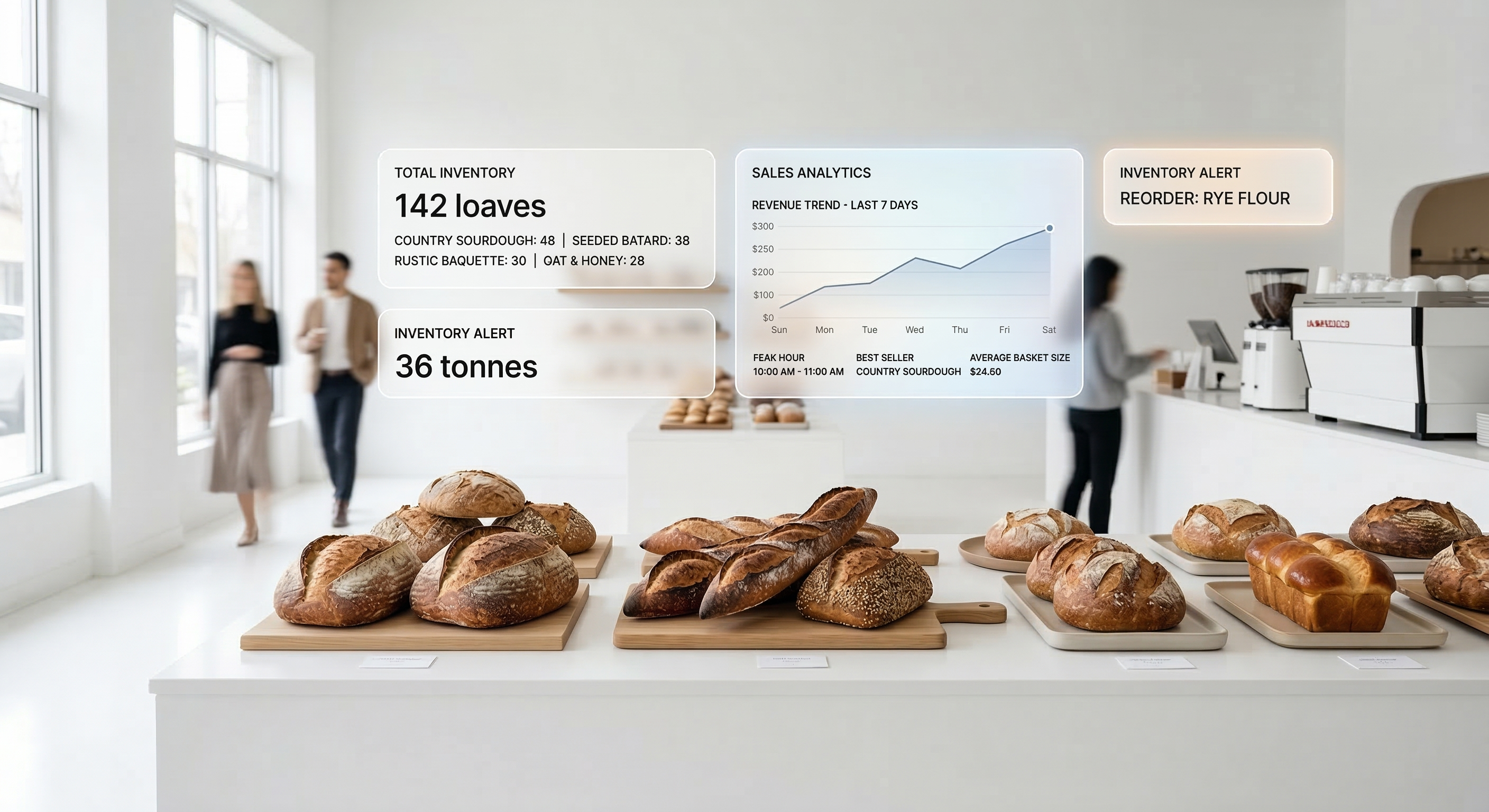Sees the bread, ignores the rest. Native face-blurring and zero customer data storage. Built for precise inventory, designed for absolute privacy.