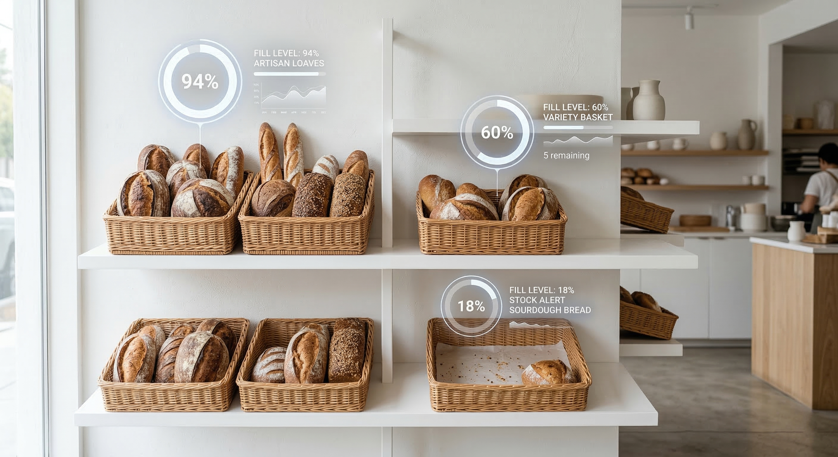 The system analyzes the visual data to calculate exact fill ratios for every shelf and basket. It knows immediately what is fully stocked, what is running low, and what has sold out, with clinical precision.